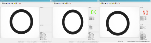 開機后,按啟動按鈕,設備進入自動運行狀態,依次設定好“主孔”“裝配孔”“膠圈”工程,物料進入傳送帶后,根據已設定的工程,對不同產品進行檢測。窗口的右上角的指示燈,綠色為合格,紅色為不合格。如果工件的位置放置不正確,系統找不到主孔的情況下,系統會提示調整工件的位置。做到合格品與不合格品的分揀,當檢測到不良時,可將不良品分揀收集。選擇診斷功能后,打開診斷,則系統每檢測一次,會彈出診斷圖像窗口。不需要此功能時,點擊“關診斷”則關閉診斷功能。